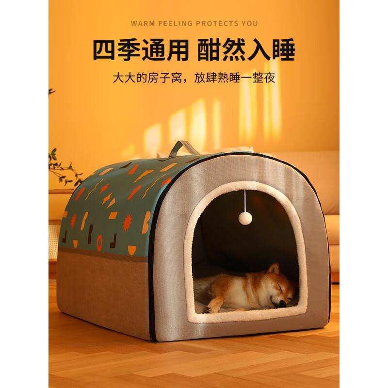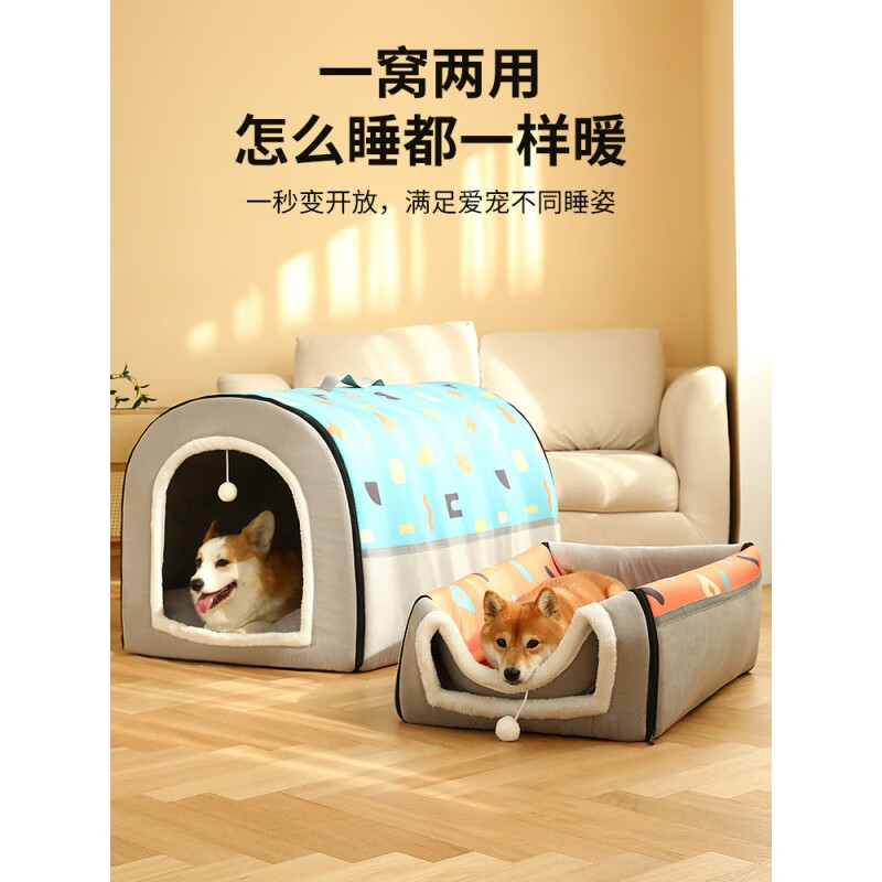CLCEY狗窝四季通用大型犬狗狗床可拆洗猫房子冬天保暖狗屋宠物睡觉用品 【四季通用 超大空间】蓝灰拼接 幼宠款【30*32*29cm 用3斤内宠物