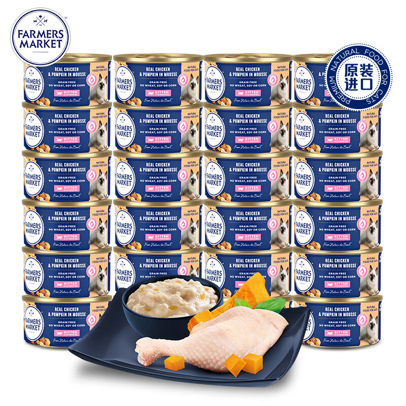 Farmers Market猫零食罐头慕斯奶糕鸡肉南瓜配方罐头80g*24罐整箱装