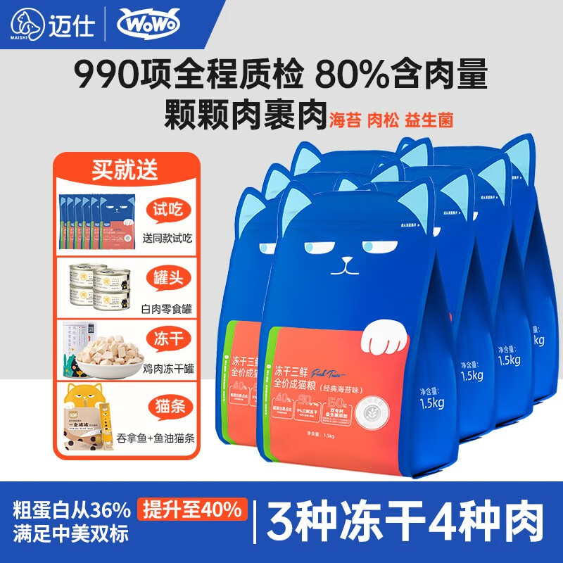 WOWO喔喔猫粮无谷冻干三鲜猫粮全价成猫粮老猫粮专用英短美短布偶营养 升级款丨10.5kg/21斤