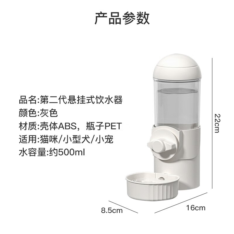 迪普尔 狗喝水器挂式悬挂式喂水器宠物猫咪饮水器喂水猫笼狗狗猫饮水机 灰色 建议笼间距2.7cm-5.5cm
