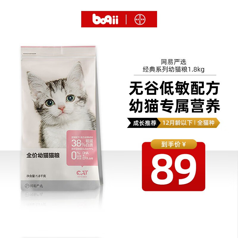 网易严选 猫粮 宠物猫咪幼猫成猫猫干粮 幼猫丨全价1.8kg