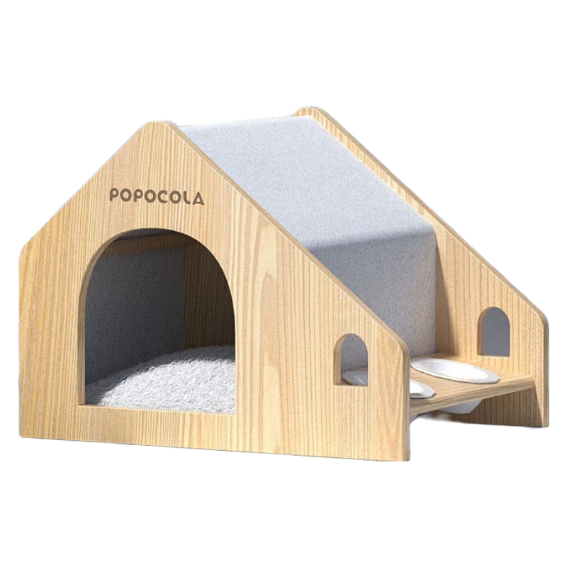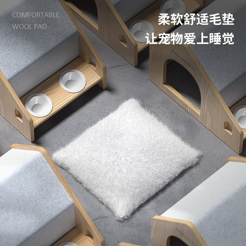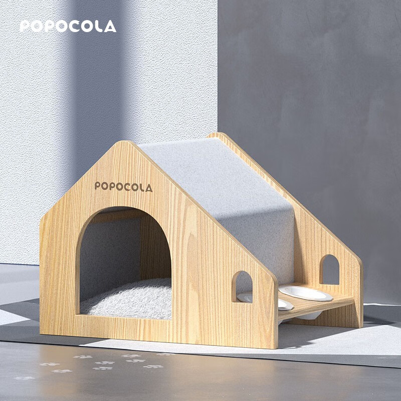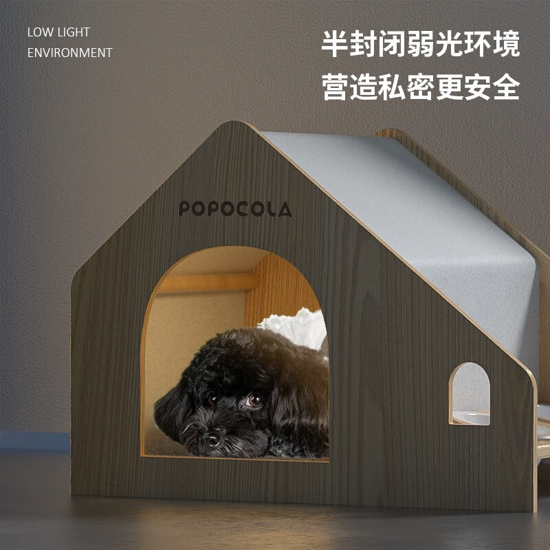 POPOCOLA狗窝房子实木木质小木头室内狗狗屋宠物床泰迪小型犬猫窝幼猫别墅 房型狗窝-【双碗 睡垫】 一窝两用