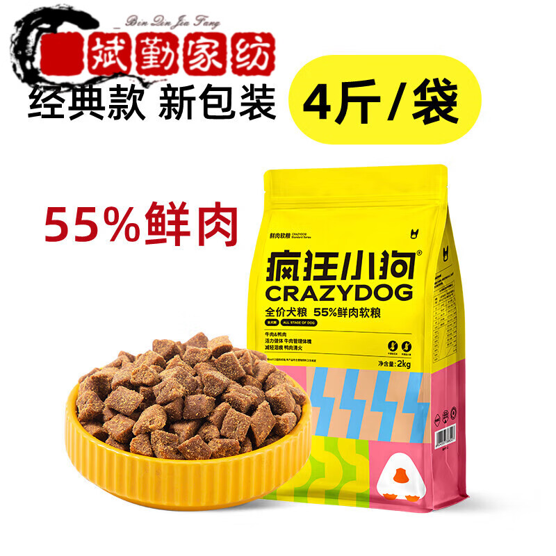 疯狂小狗55%鲜肉软粮70%狗粮成犬幼犬全价泰迪比熊老年营养 0lb净重请看 【4斤】经典款55%鲜肉软粮