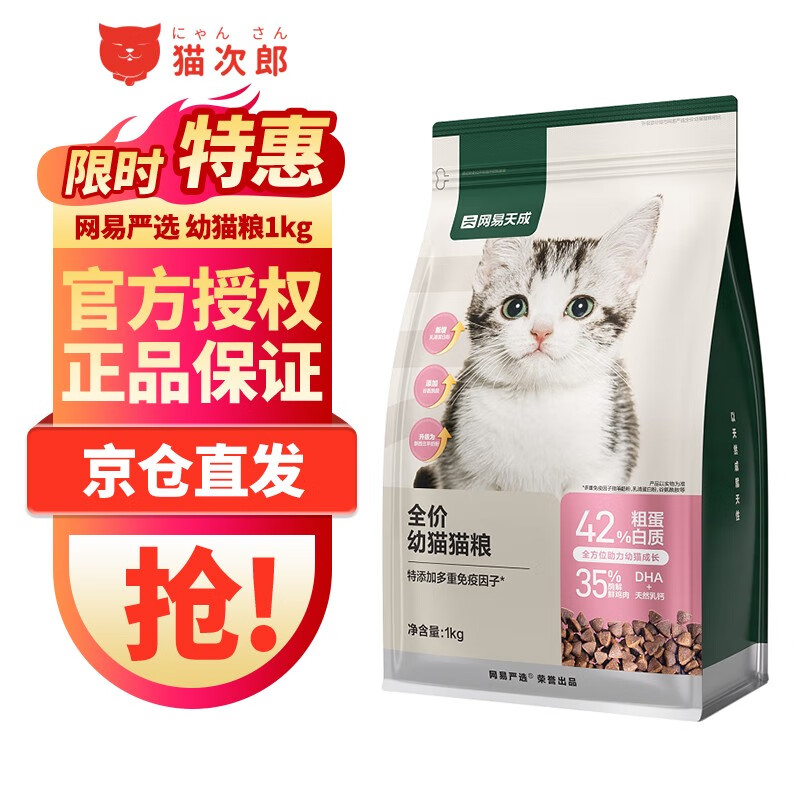 网易严选全价成猫粮 幼猫粮 居家宠物主粮 全阶段全价1到12个月专用小猫粮 【幼猫粮】1kg*1包-京仓发货