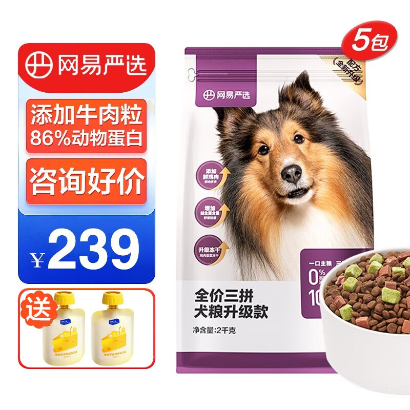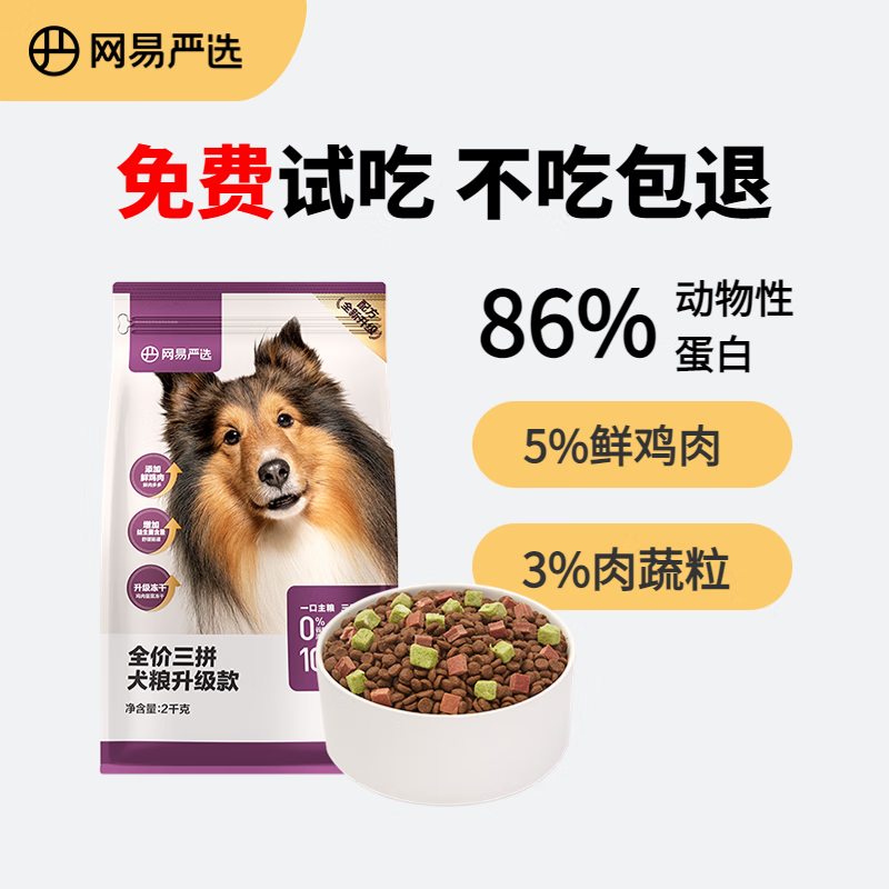 网易严选无谷牛肉鸡肉三拼全价小型中大型成犬幼犬通用狗粮 10kg(2kgx5包)
