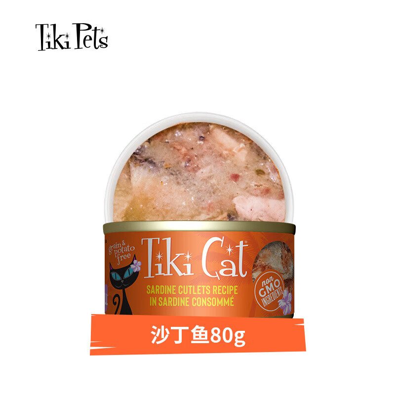 Tiki Cat主食猫罐156g肠胃调理宠物罐头进口全阶段鸡肉营养 【沙丁鱼肉排】 80g