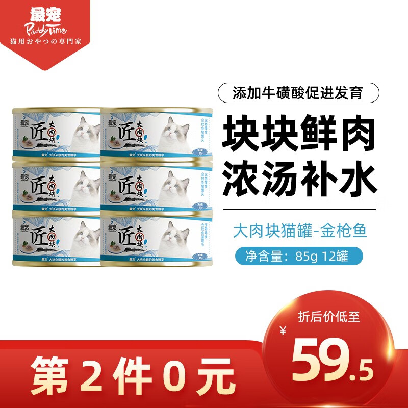 澳洲品牌 最宠 (Paddy Time)猫罐头 宠物零食罐猫粮猫湿粮成幼猫咪增肥营养汤罐发腮多口味 白身大肉块金枪鱼汤罐85g*12罐