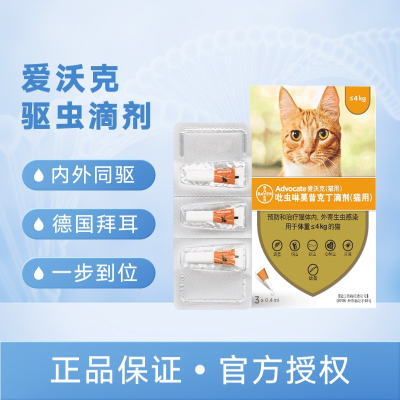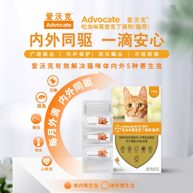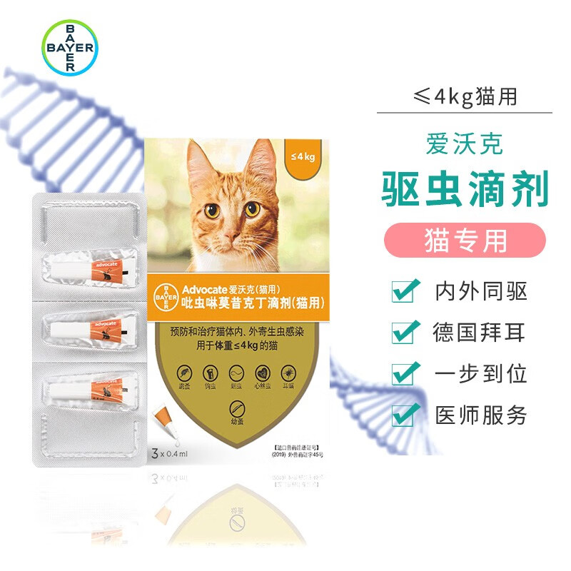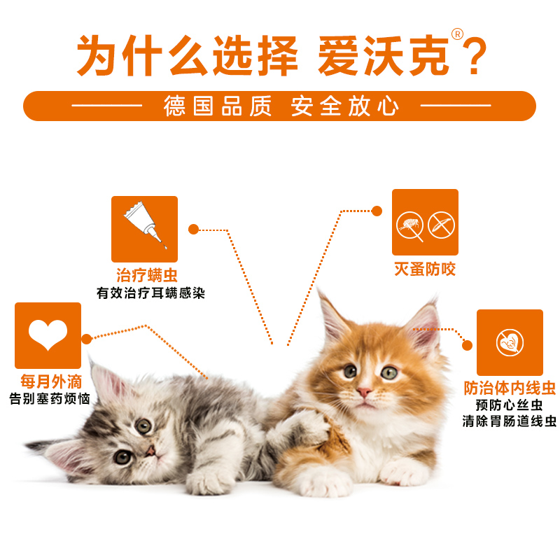 喵奴星球 拜耳 爱沃克 猫咪体内外驱虫滴剂成猫幼猫祛耳螨杀跳蚤虱子 幼猫整盒3支