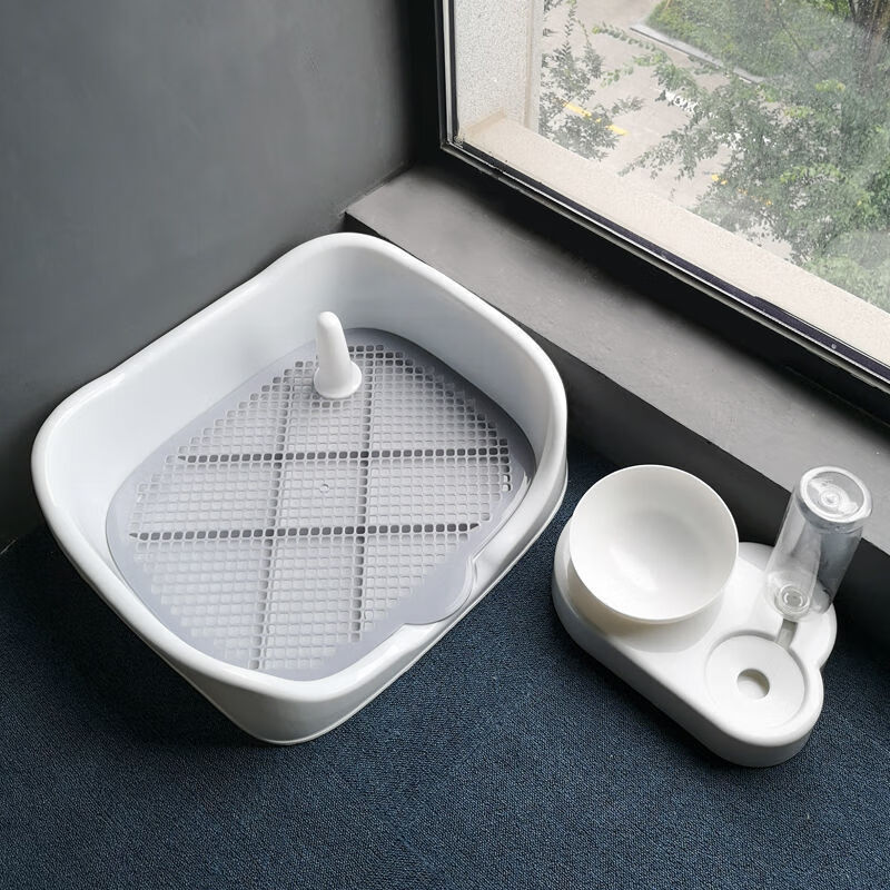 JHHUIYA狗厕所小型犬防踩屎博美泰迪柯基用品尿盆拉屎砂盆宠物狗狗尿便盆 灰白 中号(标配)