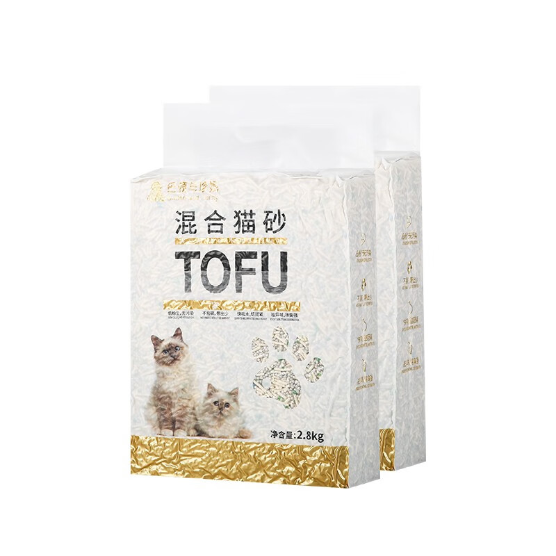 巴顿与珍妮 强除臭豆腐猫砂添加除臭彩珠混合 低粉尘快速结团可冲厕所 高品质 4合1混合猫砂2.8kg*2袋