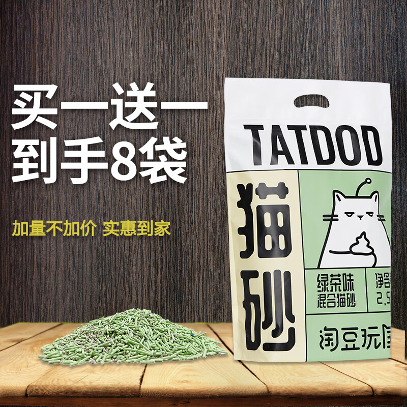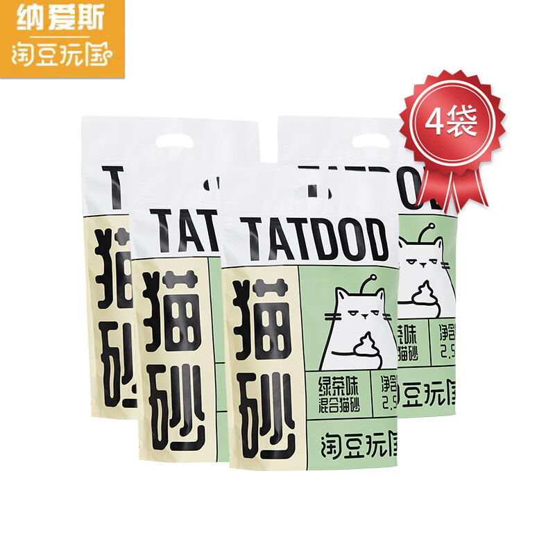 淘豆玩国 绿茶味豆腐猫砂 柿子单宁加活性炭 祛味低尘高效结团 可冲厕所 10KG 2.5kg*4包