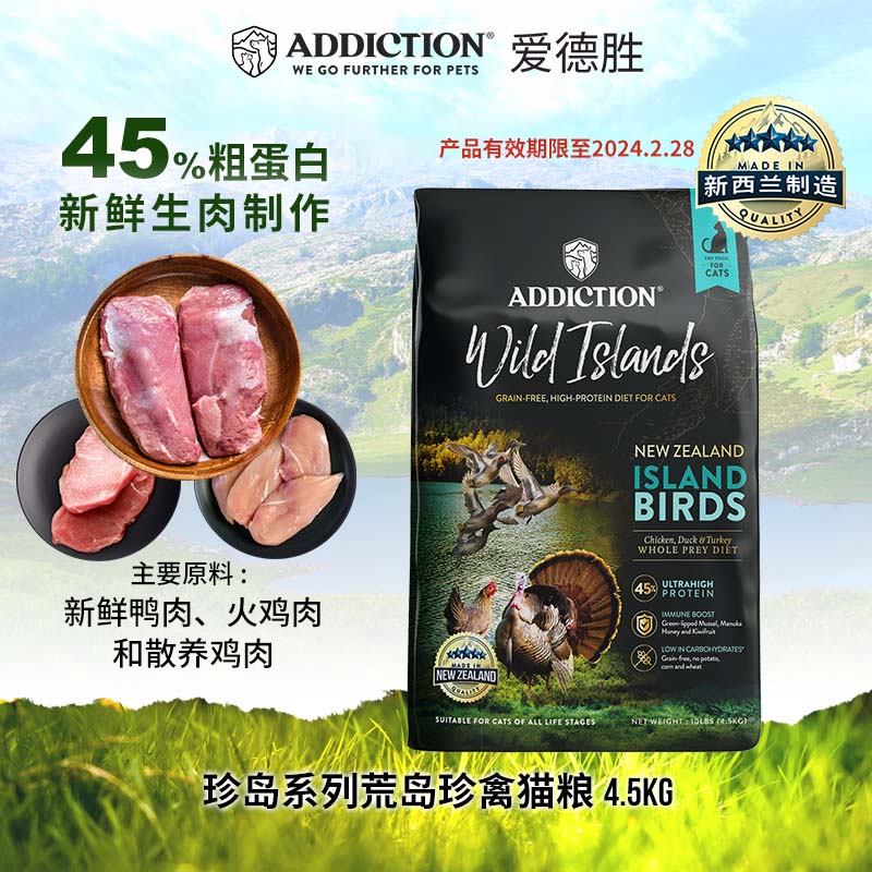 爱德胜超45%高蛋白新西兰进口无谷荒岛珍禽猫粮4.5kg 荒岛珍禽猫粮4.5kg