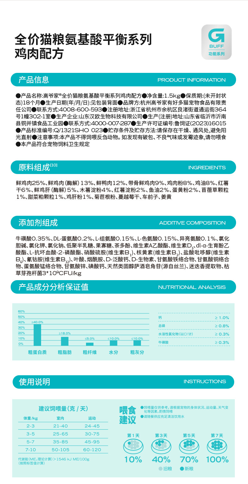 高爷家猫粮 全价猫粮氨基酸平衡系列鸡肉配方1.5kg