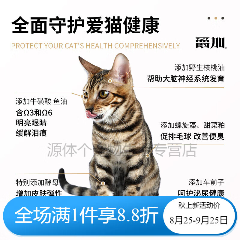 爵加全猫通用猫粮10kg成猫幼猫专用布偶美短英短蓝猫通用型20斤装 【全猫通用 健康体态】20斤 10kg