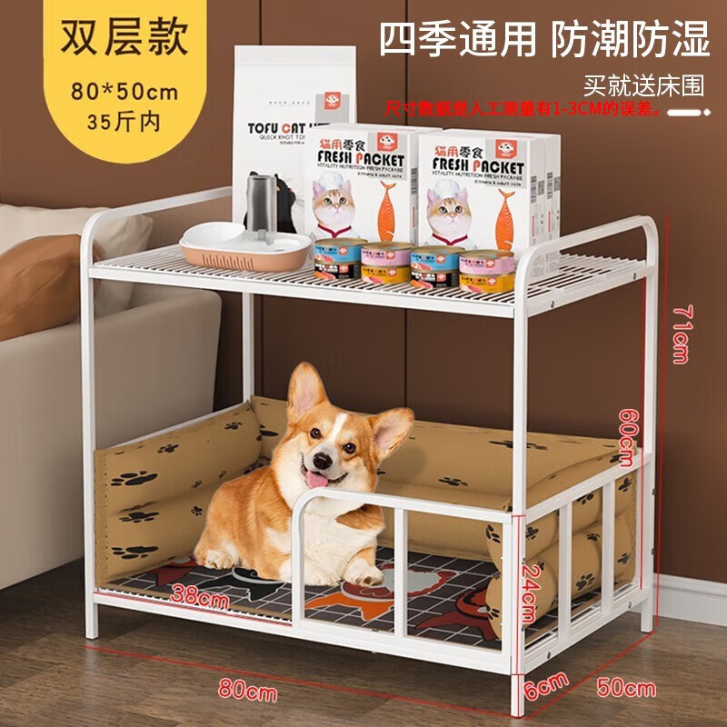 憨憨宠 狗床猫床 狗窝猫窝四季通用离地行军床狗垫子可拆洗防潮狗狗床 双层款 80*50cm适合35斤内宠物