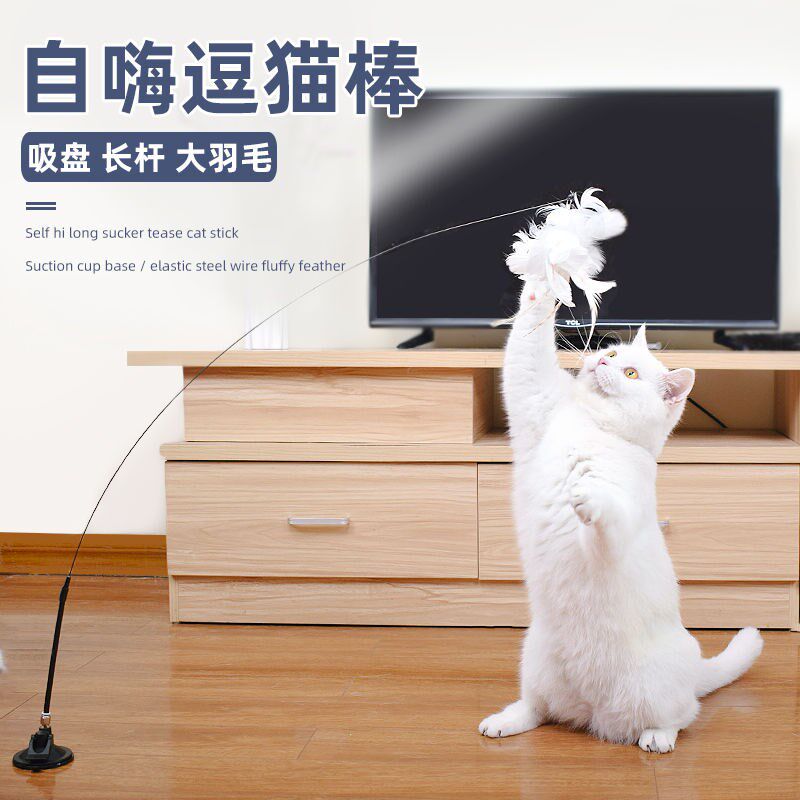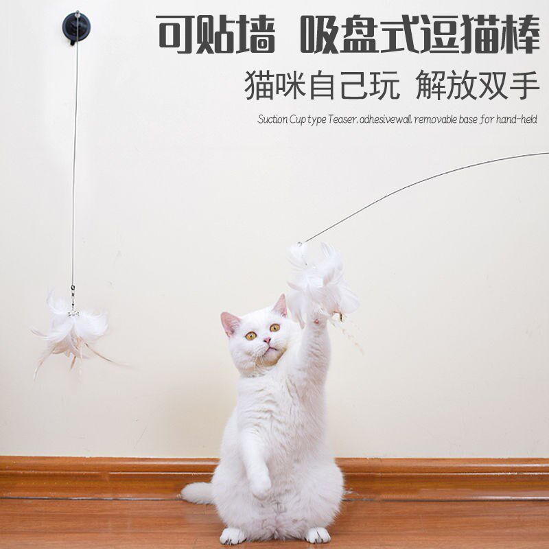逗猫棒带铃铛长杆吸盘羽毛猫玩具自嗨耐咬猫咪自己玩逗猫神器幼猫