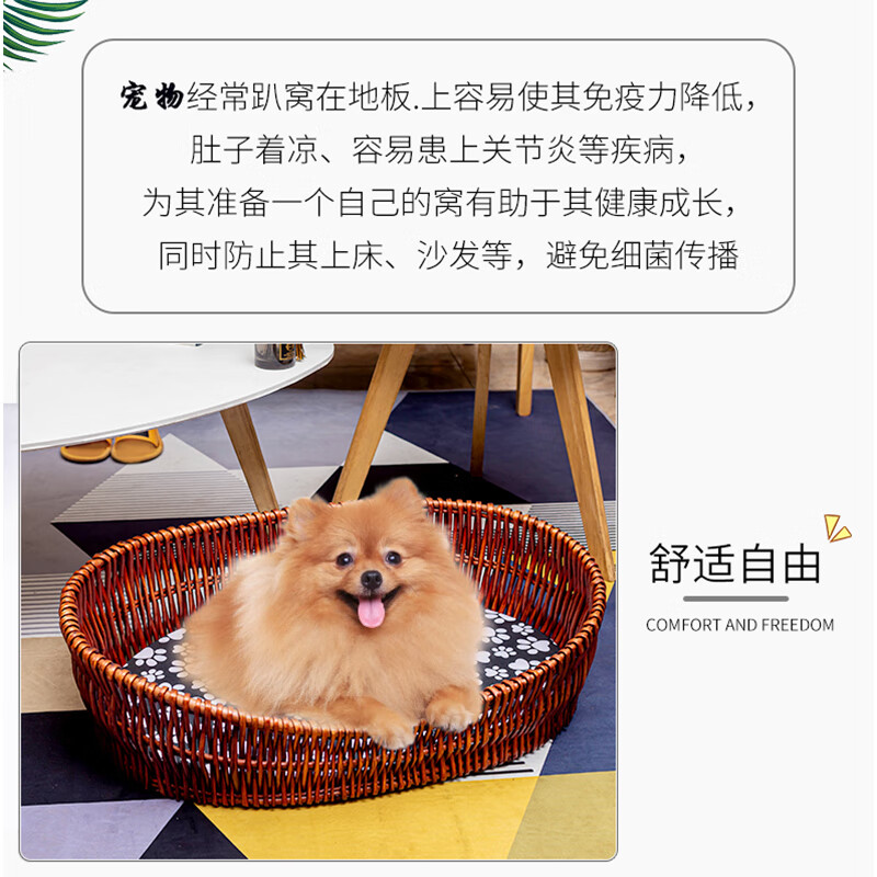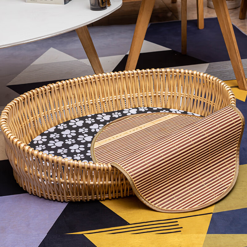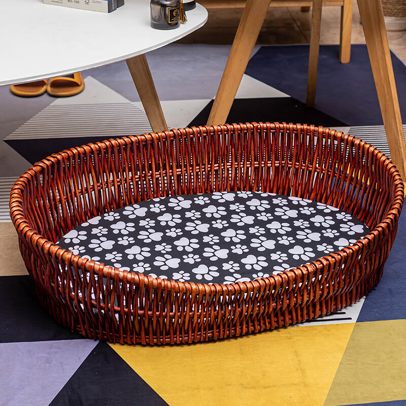 爱旺宠物狗窝藤编四季通用宠物窝大中小型犬可拆洗垫子猫窝柳编狗狗床凉席 原色椭圆裸筐 一号78*52(适合27斤内宠物)