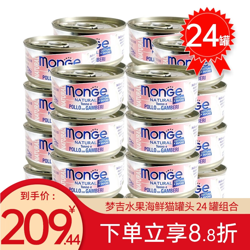 MONGE意大利梦猫罐头吉天然果冻水果金枪鱼成幼猫老年猫湿粮零食 24罐 天然系列 金枪鱼 鸡肉 虾
