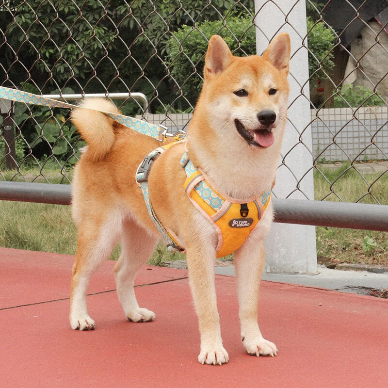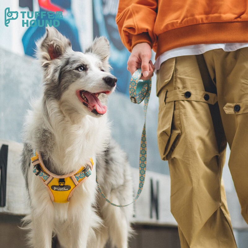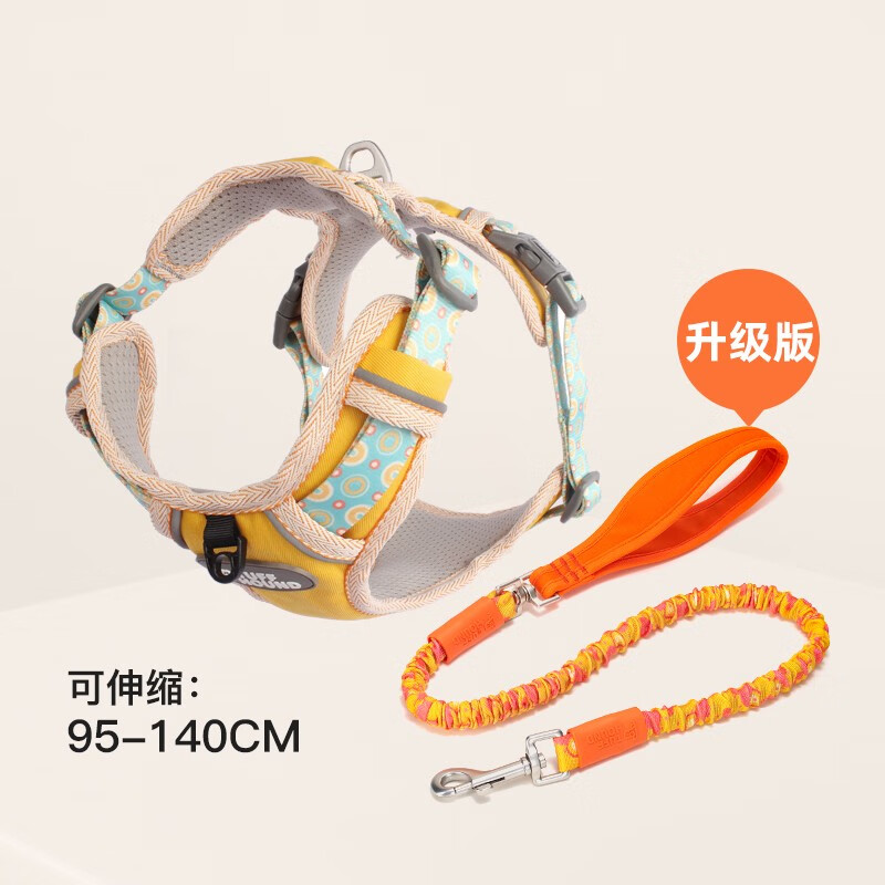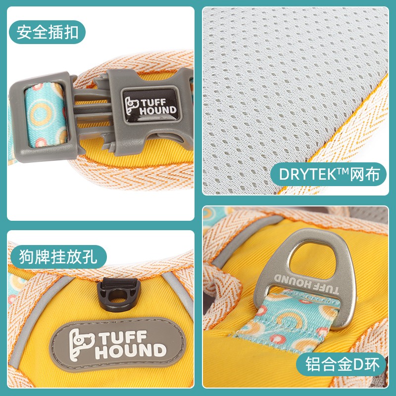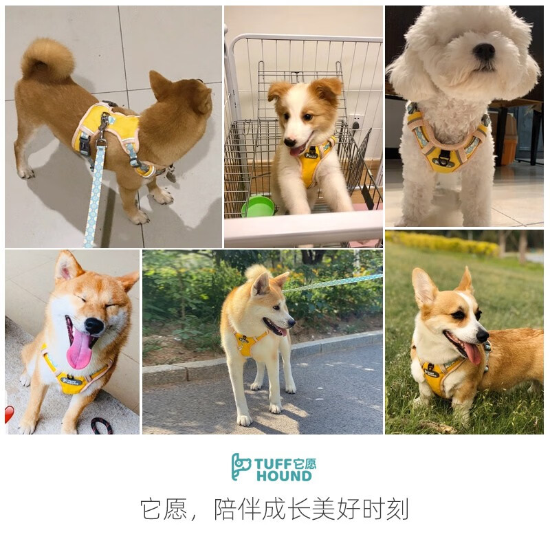 Tuffhound狗狗牵引绳遛狗绳子狗链子中型小型大型犬拉布拉多金毛金毛柯基胸背带防爆冲轻便型背心式 黄色(含升级弹力牵引绳) XS (胸围31-44cm 建议4-8斤选择)