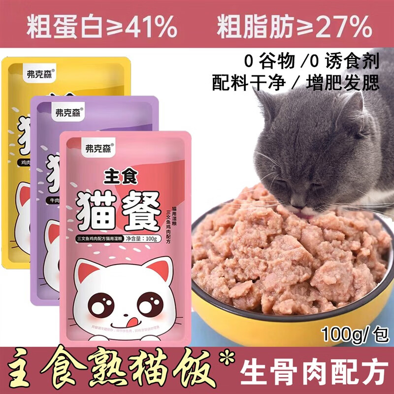凛东猫咪主食湿粮妙鲜包鲜封包生骨肉猫罐头猫零食增肥发腮猫粮全猫饭 鸡肉配方 1包100克