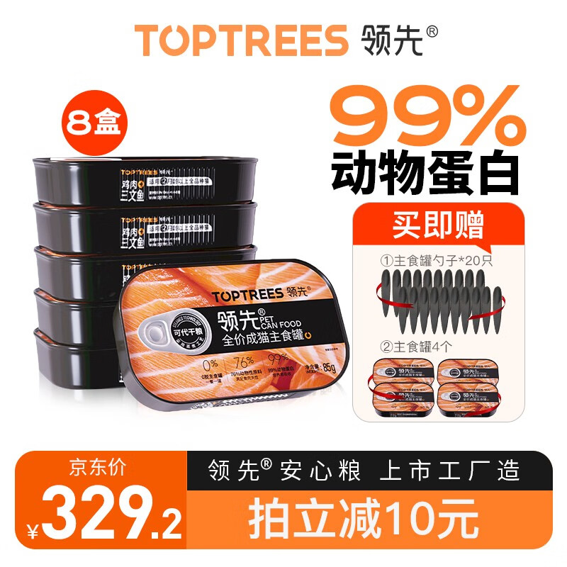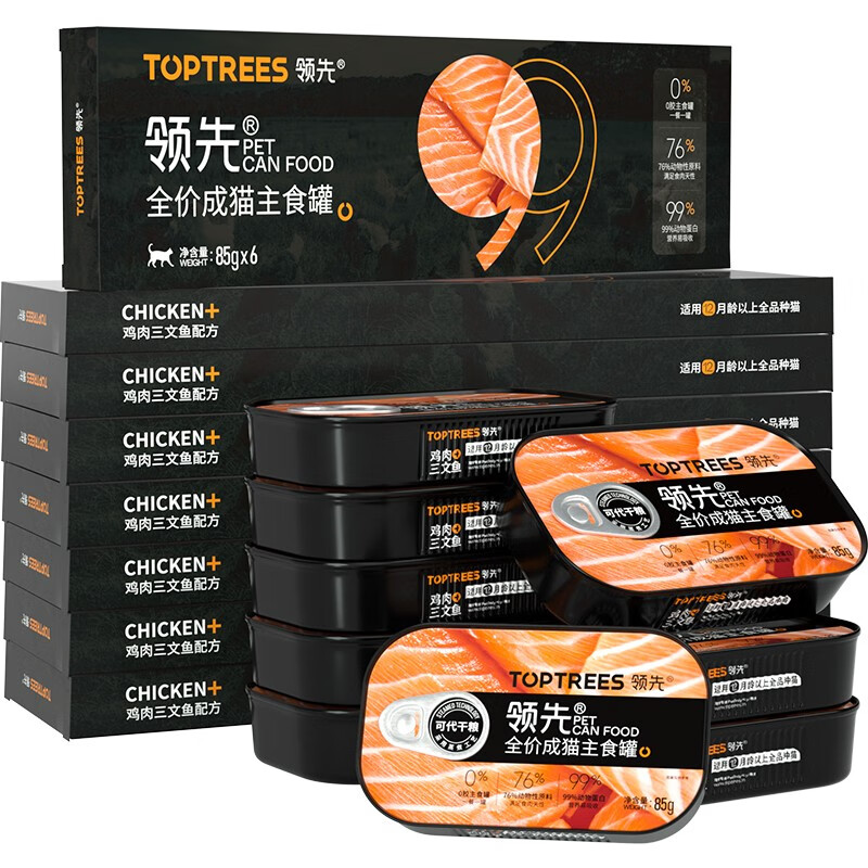 Toptrees领先主食罐囤货装 成猫湿粮无谷全价发腮营养增肥猫罐头 【8盒】4080g(85g*48罐)