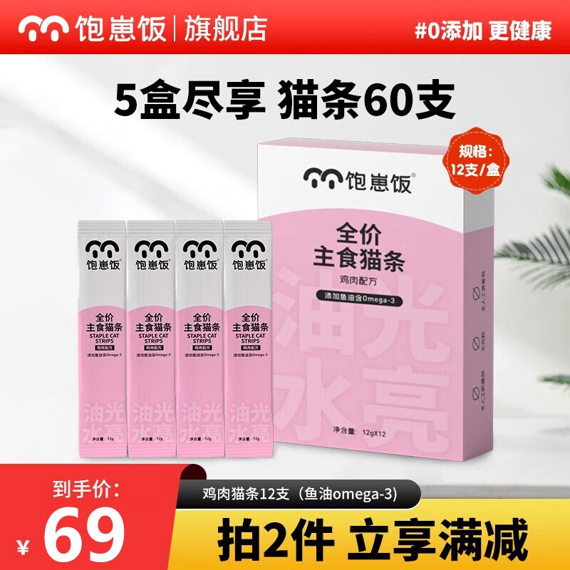 饱崽饭猫条猫零食鸡肉8g*108支成猫幼猫全阶段通用猫咪湿粮猫肉条 鸡肉猫条60支/5盒