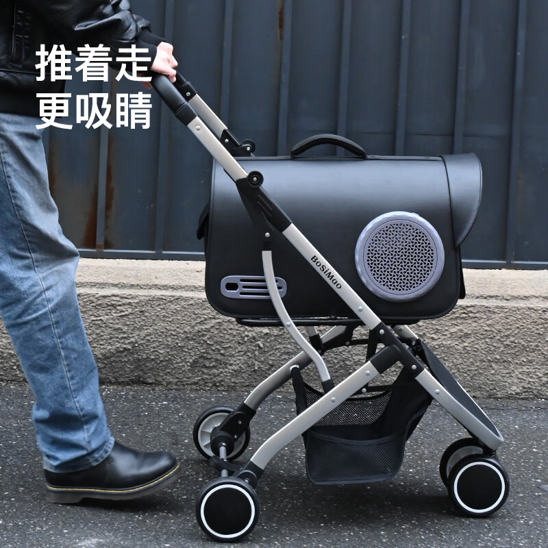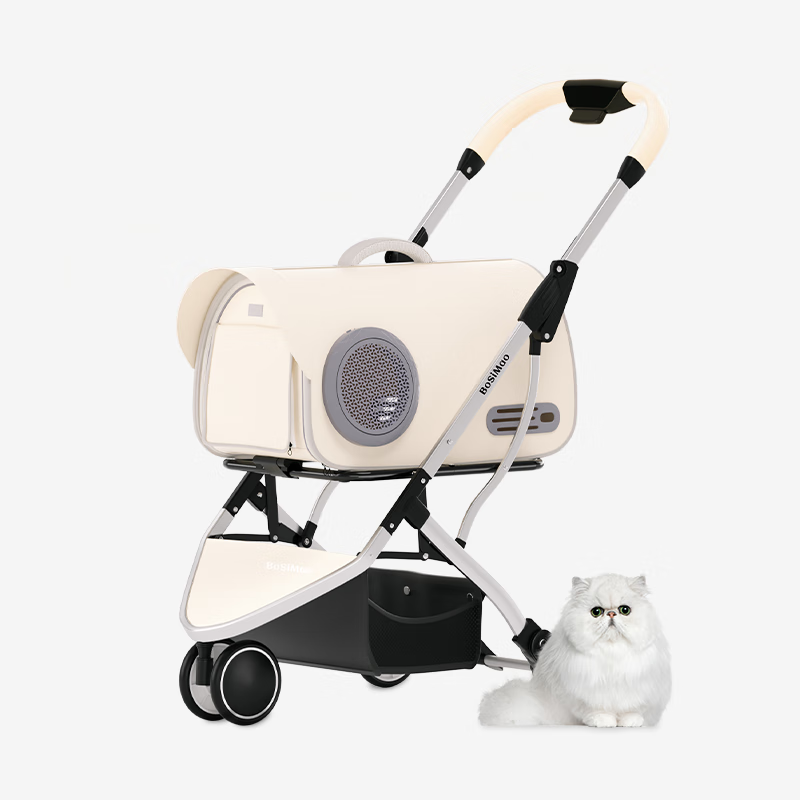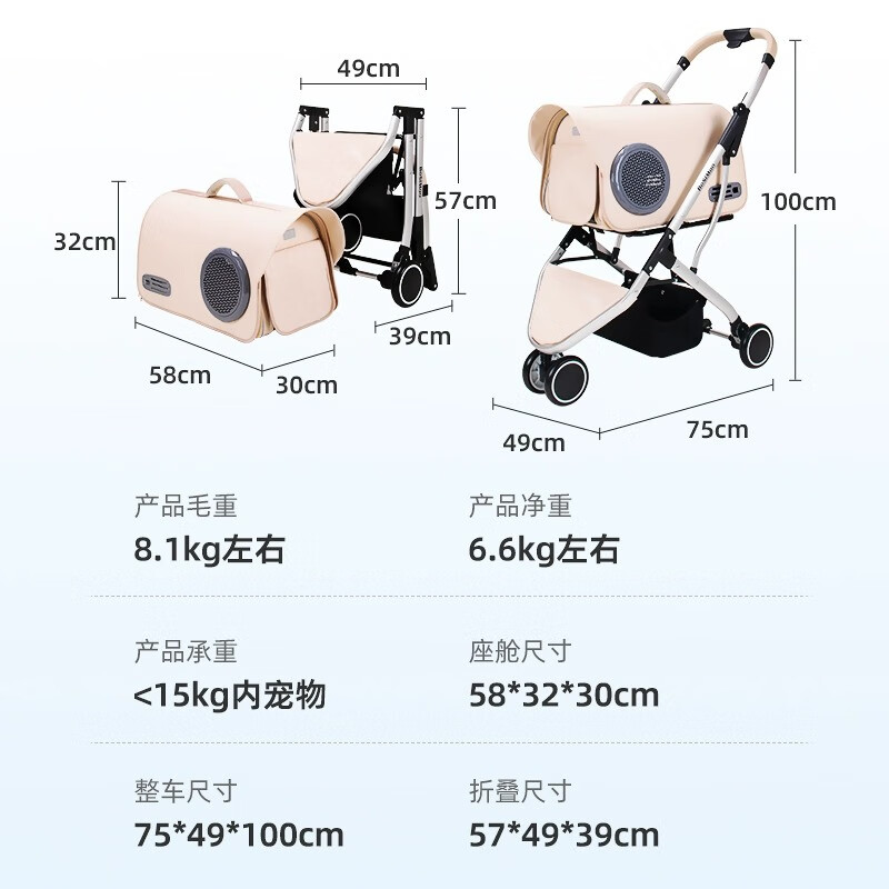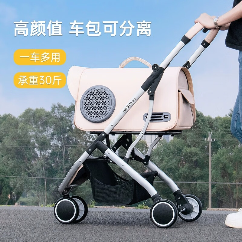 BOSIMAO宠物推车狗狗猫咪泰迪手推车外出小型宠物狗车轻便可分离笼折叠 可可蛋奶