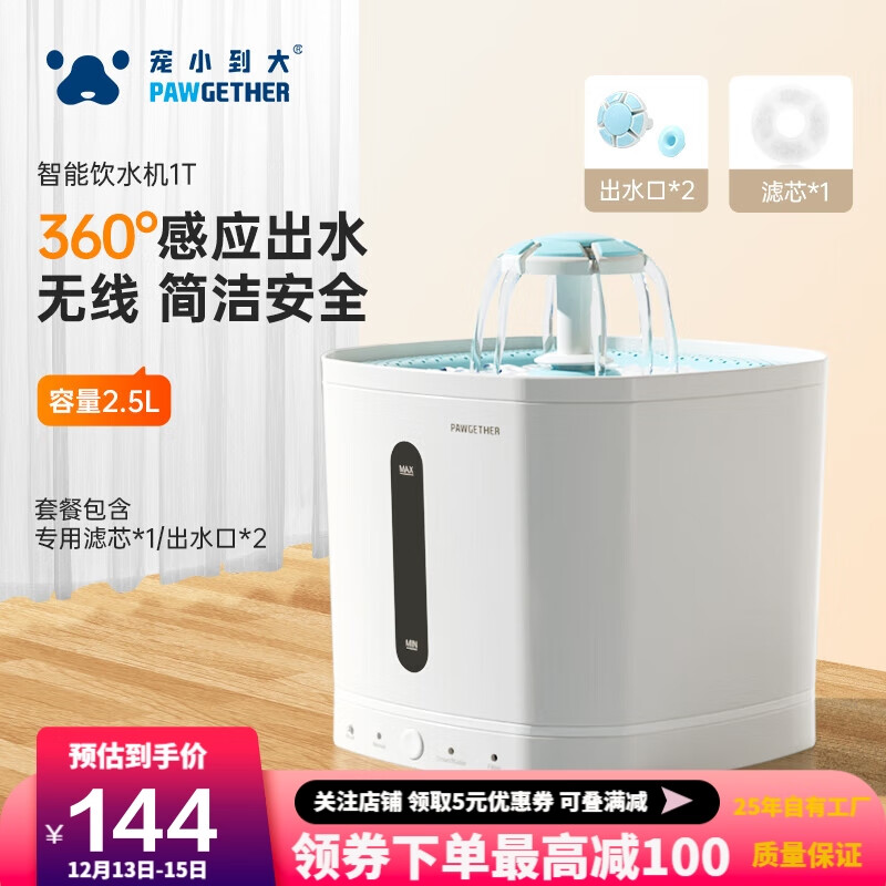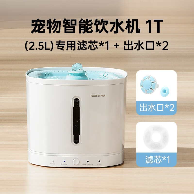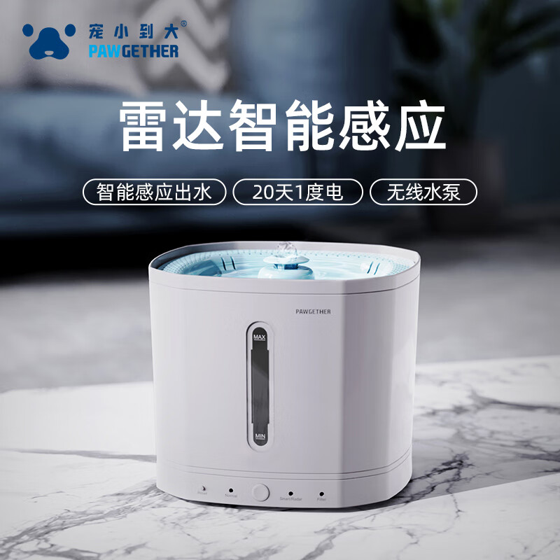 宠小到大宠物饮水机猫咪饮水器无线水泵360度感应出水自动喂水器循环流动 Drip 1T 中大型猫狗饮水机2.5L