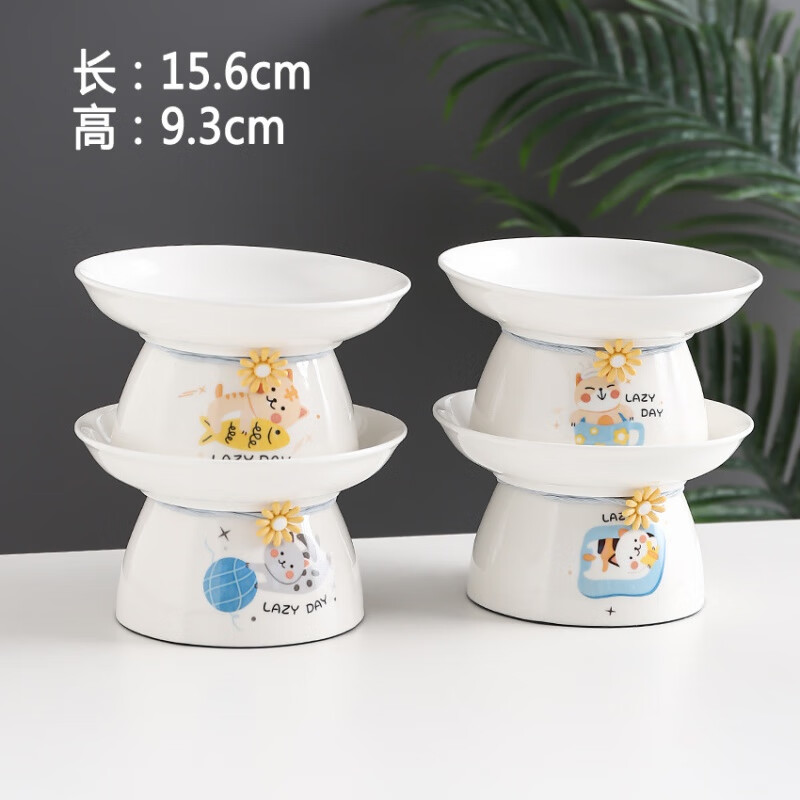 JHHUIYA猫碗猫盆陶瓷碗保护颈椎猫粮碗宠物喝水碗高脚饭碗猫咪碗狗碗可爱 高脚盘子(懒散猫系列)