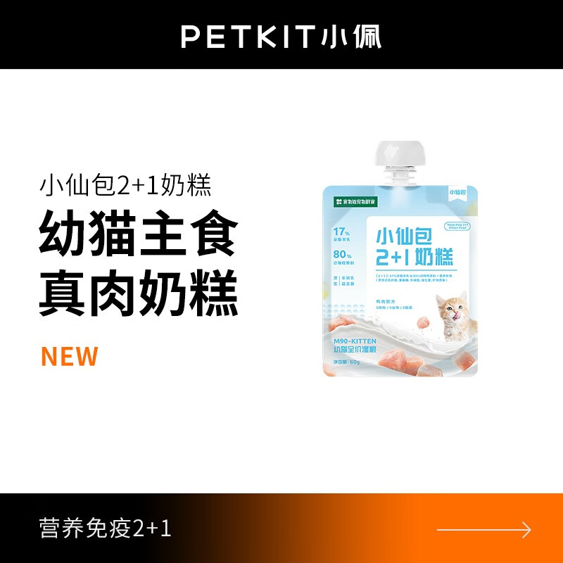 小佩【主食】小仙包2 1奶糕 食物链猫零食湿粮肉块软包鲜粮湿粮小仙包2 1奶糕全价猫粮猫条酱生骨肉 羊奶鸭肉丨60g*1
