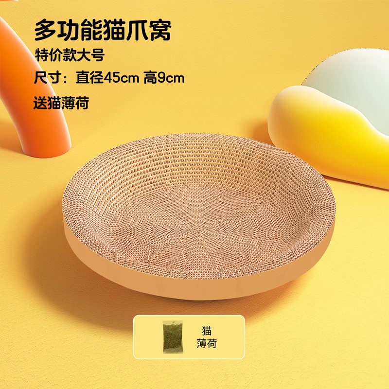 百宠日记猫抓板窝碗形超大号猫窝宠物猫玩具瓦楞纸猫爪板磨爪器高品质猫咪用品 特价款大号【45*9】加购猫薄荷