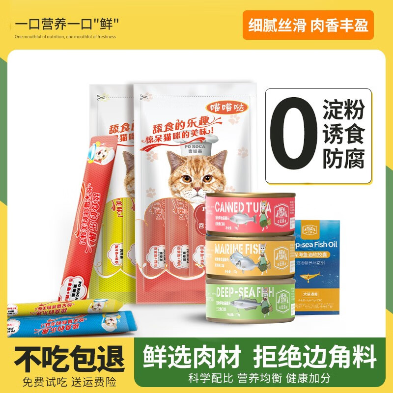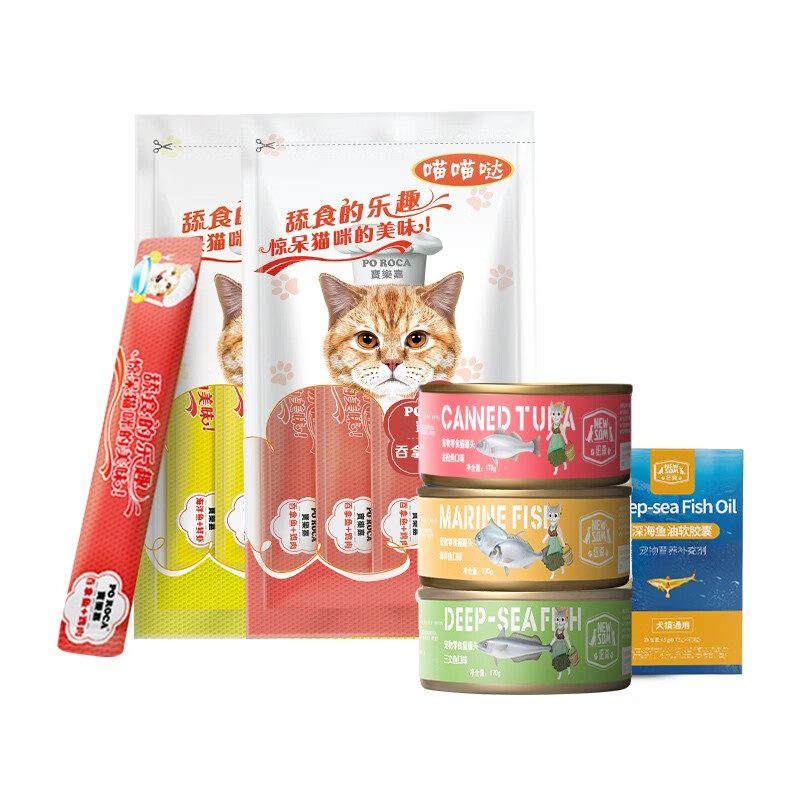 纽森纽森白肉猫罐头宠物零食尝鲜大礼包成幼猫通用零食鱼油猫条混合装 纽森170g*12罐 8支猫条 1瓶鱼油