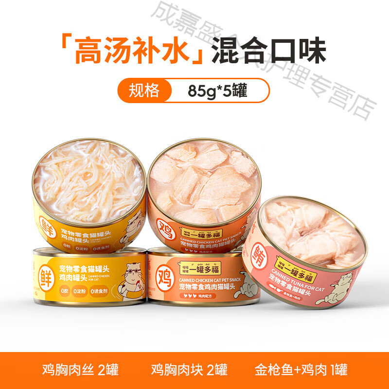 爱肯拿(ACANA)猫罐头主食罐补充营养增肥发腮猫咪零食成幼猫湿粮条24罐整箱 尝鲜3种口味混合85g*5罐【金枪 85g/罐