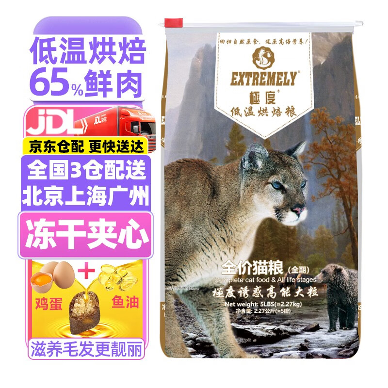 极度油蛋黄夹心猫粮全价全期低温烘焙0谷物鱼肉牛肉低敏助排毛球 成猫幼猫全猫种通用 2.2磅/1kg(夹心)无冻干-东仓