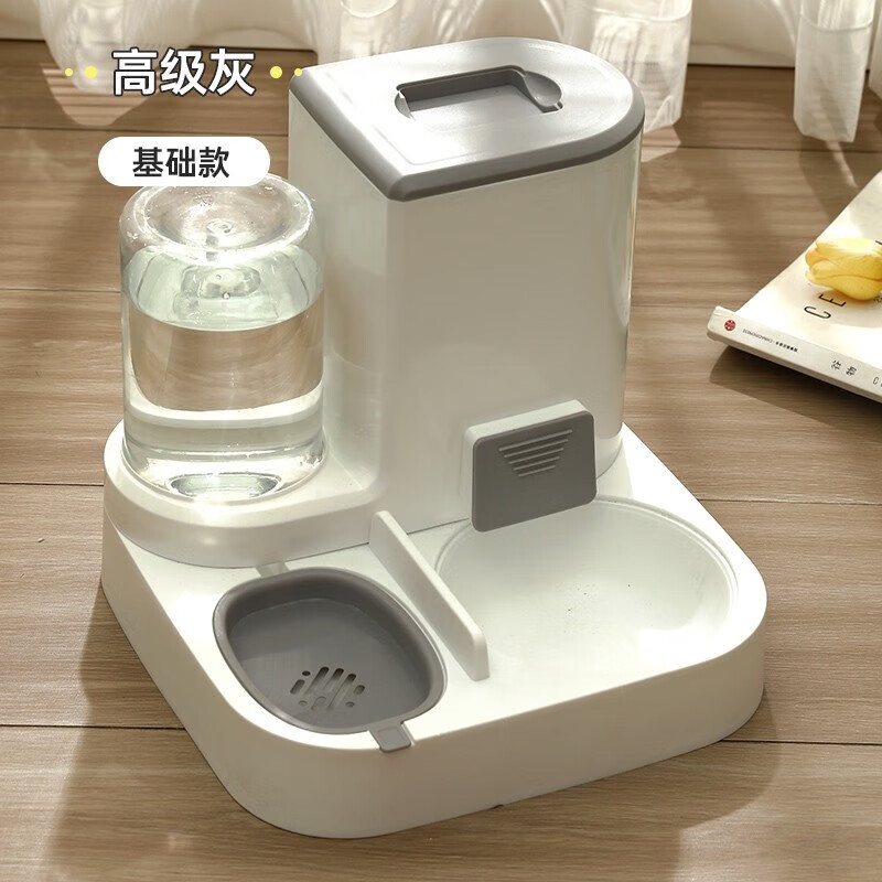 KimPets宠物猫碗自动喂食器猫咪饮水机狗碗食盆水碗一体储水储粮宠物用品 升级款灰色[自动投喂/纯净过滤]