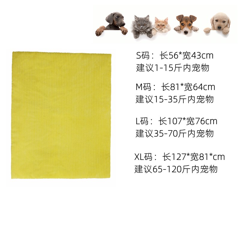 极爱宠 灯芯绒宠物床垫秋冬灯狗狗床垫子保暖可固定在床架上 兼容KH狗床 黄色-床垫(不含行军床) 81*64cm (中码)
