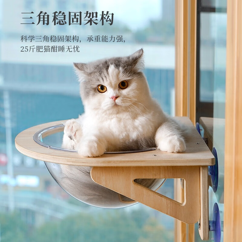 实木猫吊床猫挂窝阳台猫架悬挂式猫爬架窗户玻璃吸盘透明猫窝定制 *15CM