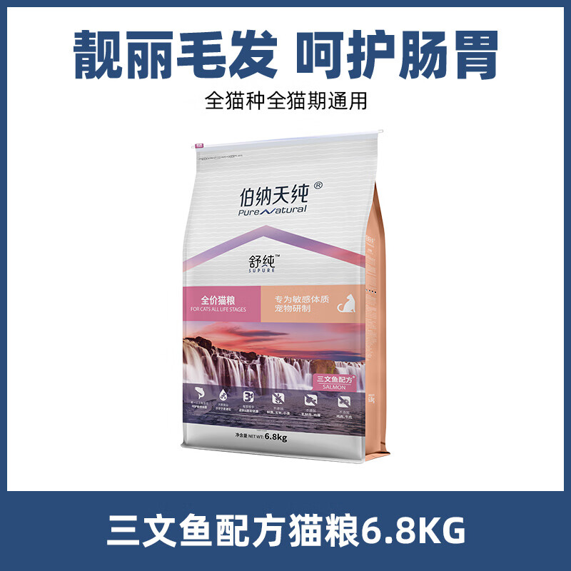 伯纳天纯猫粮成猫幼猫通用型 全猫种舒纯三文鱼鸭肉配方猫粮6.8kg 三文鱼口味 6.8kg 6.8kg
