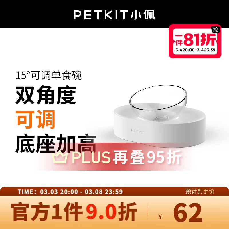 小佩15°可调节碗 猫碗猫食盆狗狗喝水饮水 护颈椎宠物碗食具水具 单食碗