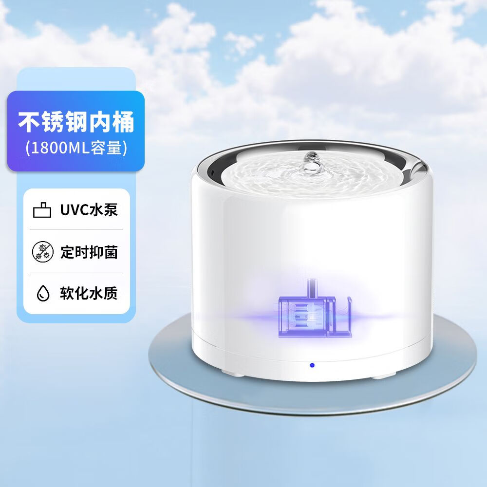小佩猫咪饮水机宠物智能饮水器无线水泵款不锈钢狗自动喝水用品 六代无线水泵饮水机(UVC抑菌款