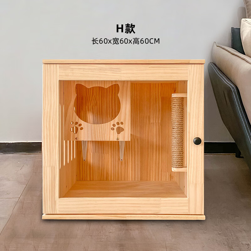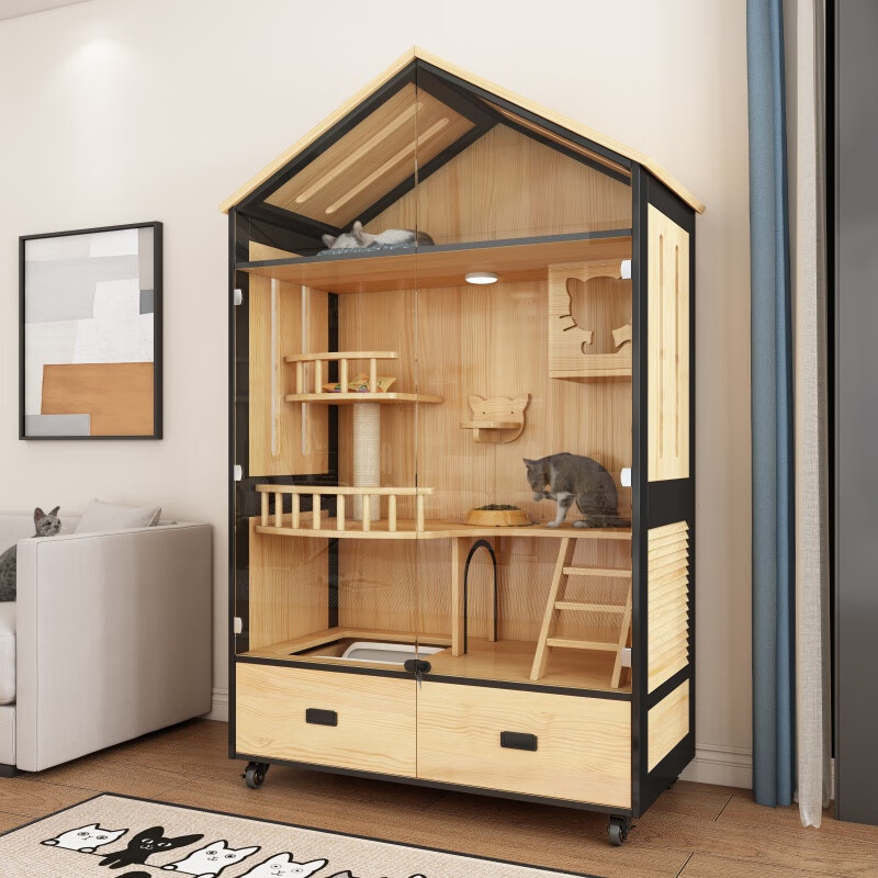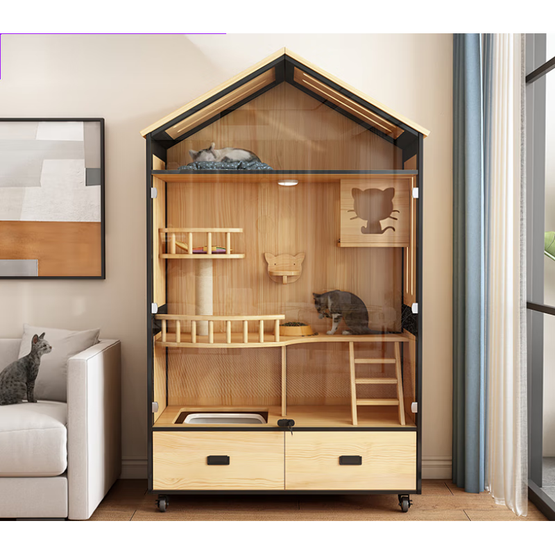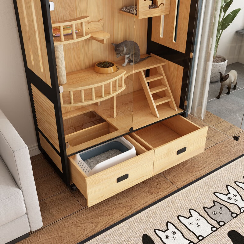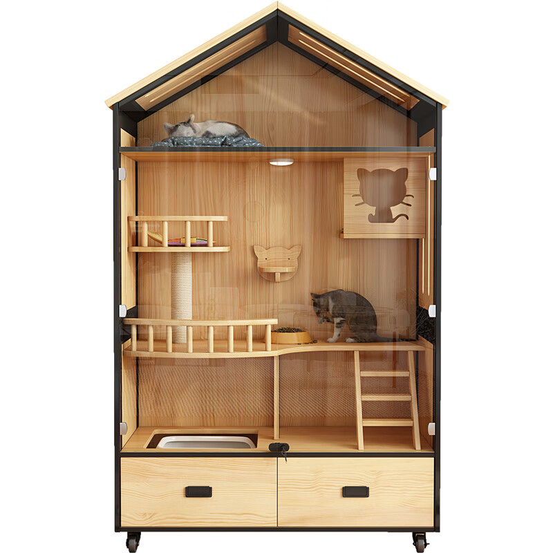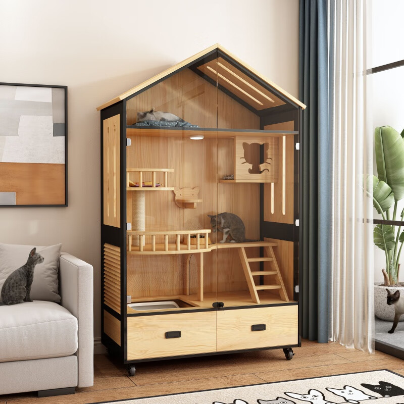 小米城堡木质猫别墅 木质猫笼双猫 家用猫舍屋空中花园猫笼带抽屉家用室内 木质款600*600*600mm L-大型