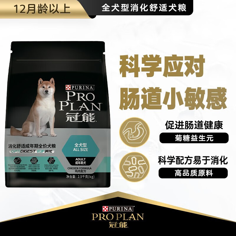 冠能(PRO PLAN)狗粮成犬泰迪比熊柯基法斗柴犬全犬种通用全价狗粮 消化舒适狗粮2.5kg