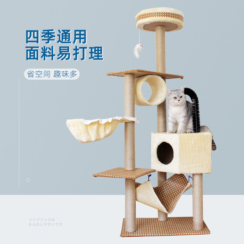 大型大猫麻藤猫爬架/树猫咪架子实木柱形猫架别墅猫窝一体通天柱