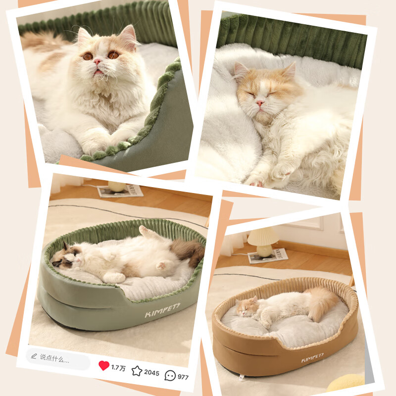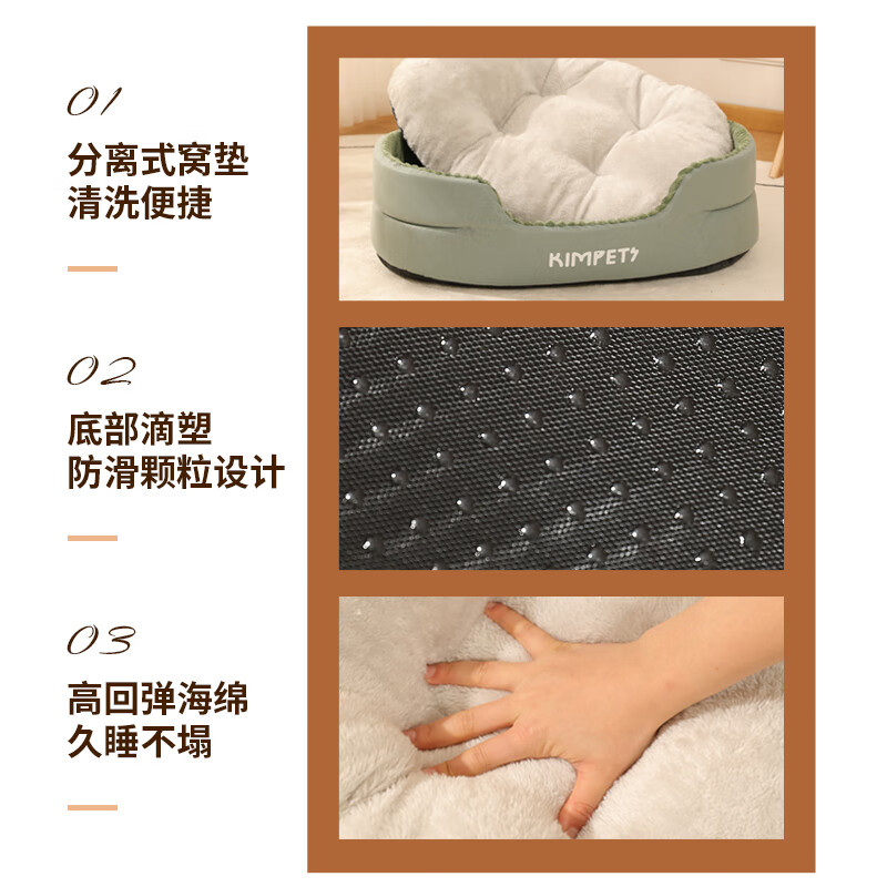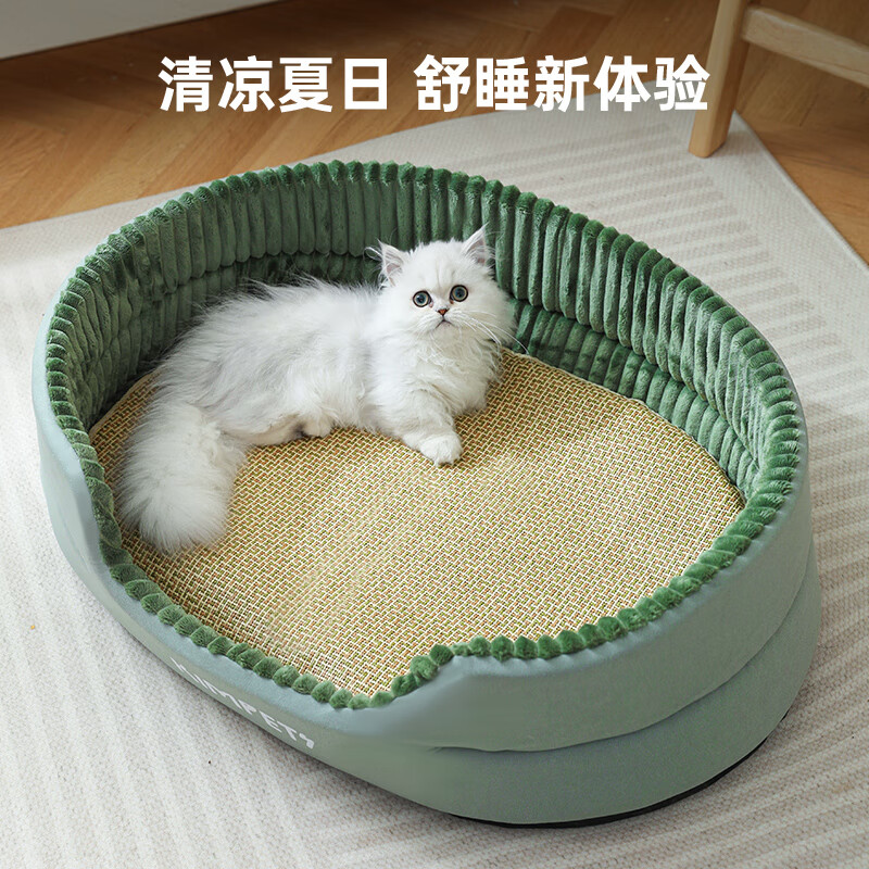 可淘气夏季猫窝狗窝猫屋四季通用猫床猫咪幼猫可拆洗夏天小狗窝凉垫用品 【松石绿】-四季通用深睡窝(加大 S【40*30- 建议5斤內宠物】