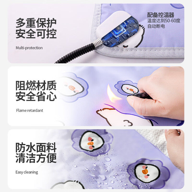 柒哦宠物电热毯狗狗加热垫恒温防水防抓冬季保暖猫窝猫咪取暖器狗垫子 淘气鸭3档M【25斤内 40*60cm 】