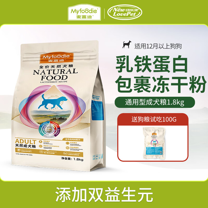 麦富迪乳铁蛋白狗粮 通用型营养天然犬粮 成犬粮1.8kg