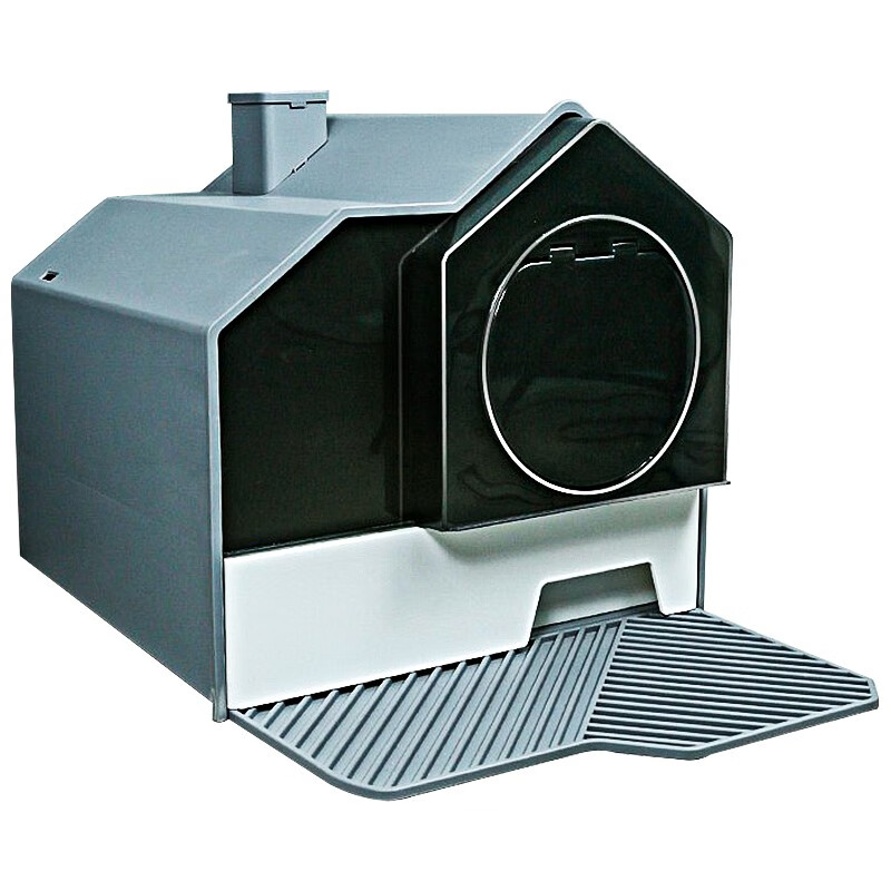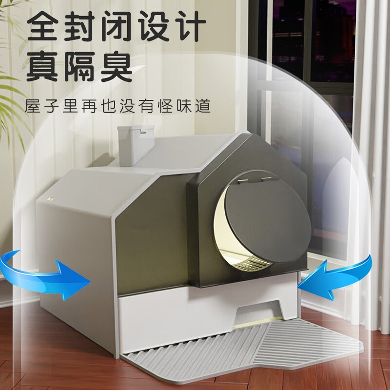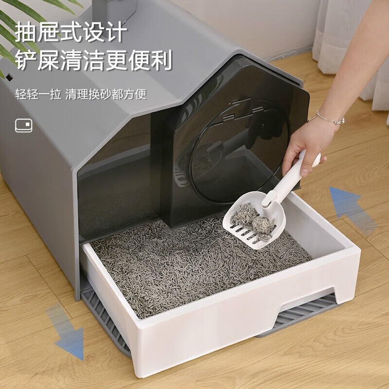 茨格曼 猫砂盆特大号全封闭式猫厕所大号猫沙盆抽屉式带盖猫屎盆幼猫不漏砂 绅士灰-豪华套餐【猫砂铲 脚垫 香片*3个】 超级特大号