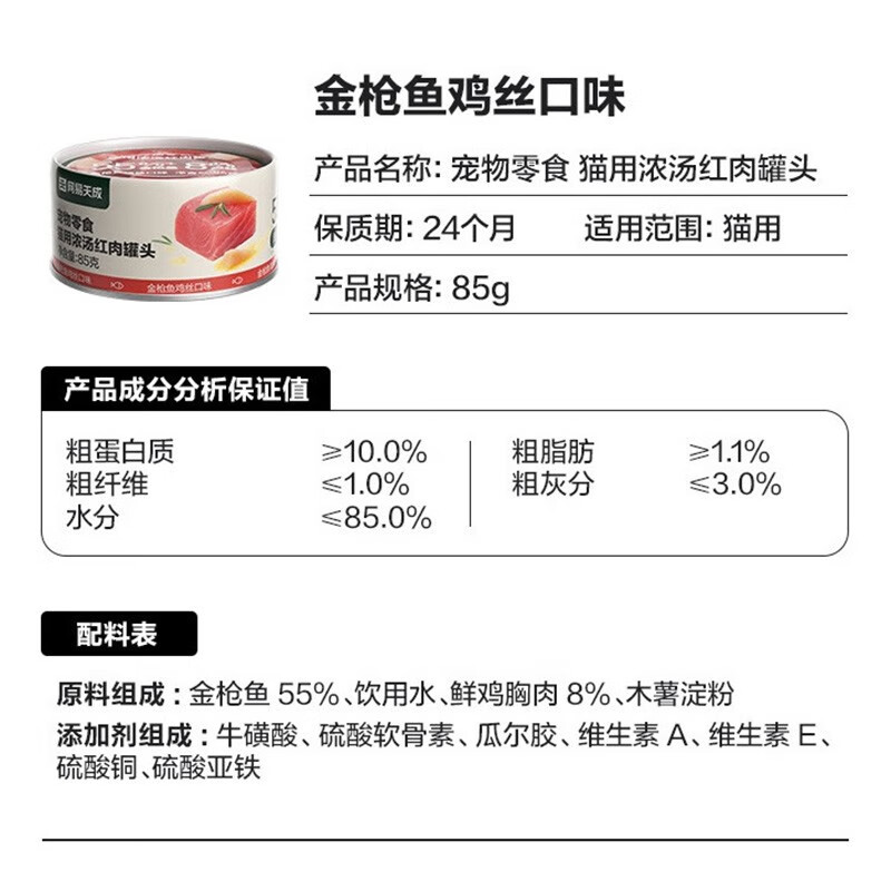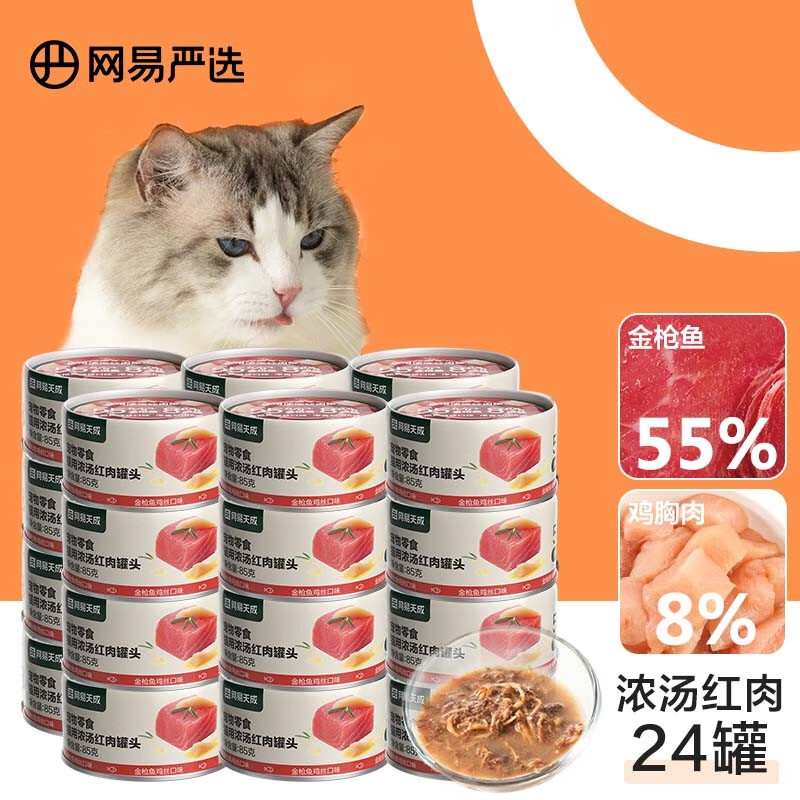 网易严选宠物罐头猫湿粮宠物零食浓汤红肉罐头 金枪鱼鸡丝口味 85克*24罐