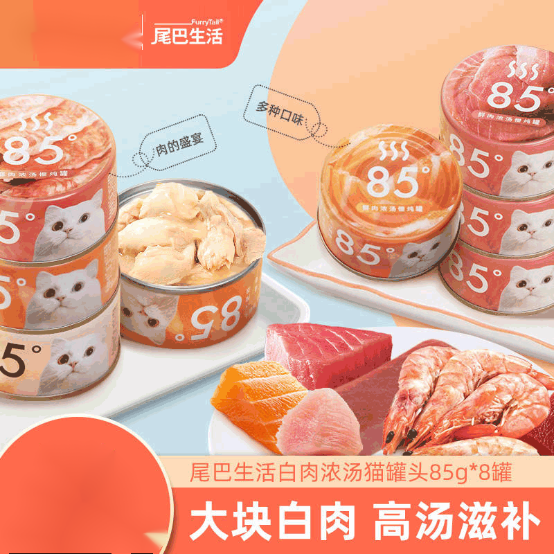 尾巴生活85度猫罐头猫咪零食罐白肉肉浓汤罐成幼猫补充营养补水 【主食补水】尾巴生活主食餐盒 3 85g