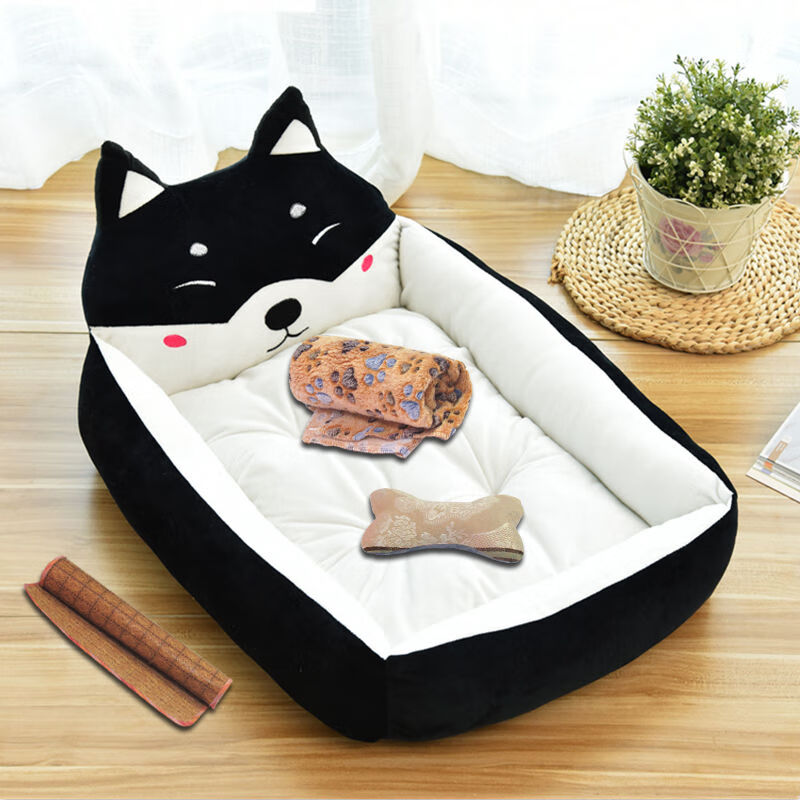 网红狗窝四季通用泰迪法斗宠物垫子小型大型犬狗狗床猫窝冬天保暖 黑色秋田(四件套) 70cm(25斤以内宠物)